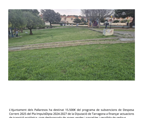 SubvencionsL’Ajuntament dels Pallaresos rep 15.500 € del Pla ImpulsDipta per a actuacions de transició ecològica