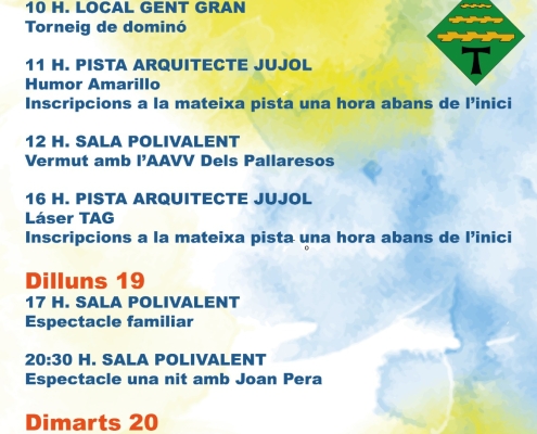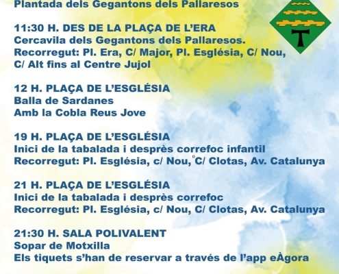 Des de l’Ajuntament dels Pallaresos es convida a tota la ciutadania a participar activament dels actes programats i a gaudir d’una Festa Major que vol ser punt de trobada, celebració i identitat col·lectiva.
