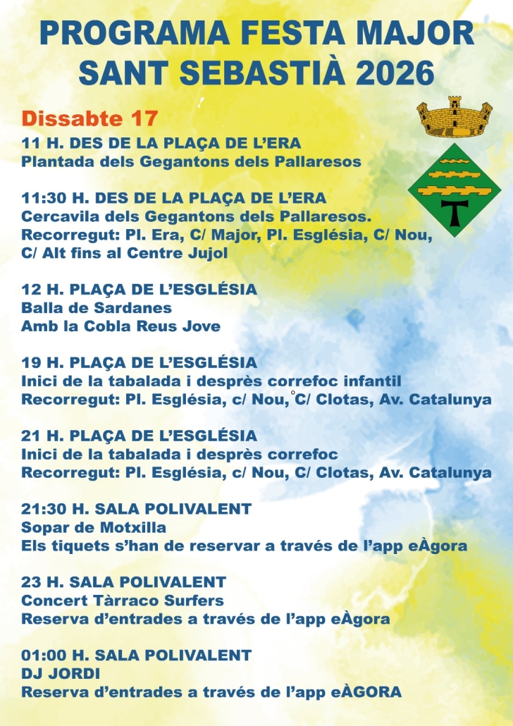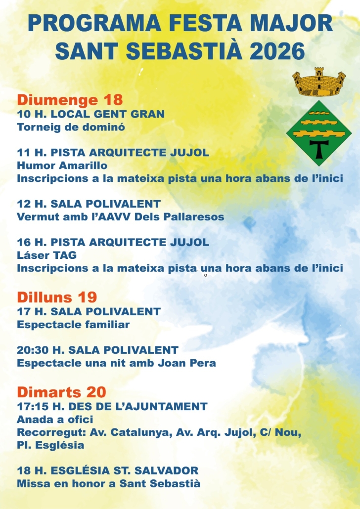 La Festa Major inclourà actes emblemàtics vinculats a Sant Sebastià, així com activitats infantils, propostes culturals, concerts, espais de trobada i moments pensats per gaudir en família i amb amics, reforçant l’esperit festiu i de convivència que caracteritza els Pallaresos.